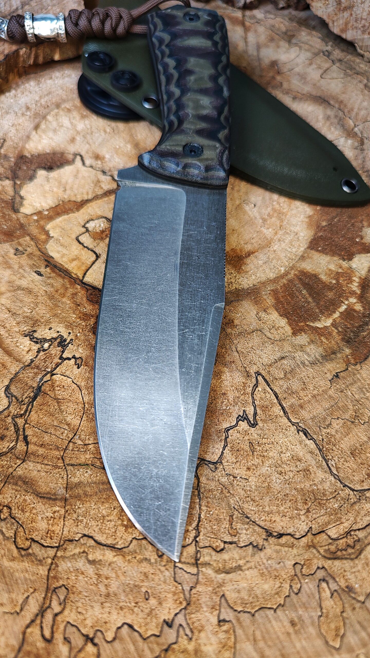Wilk to solidny nóż użytkowy o konstrukcji full tang, zaprojektowany z myślą o realnej pracy w terenie i codziennym użytkowaniu. To model sprawdzony w praktyce i dopracowany pod kątem wytrzymałości, ergonomii i łatwości obsługi. Ostrze wykonane ze stali Sleipner, zahartowanej do 60 HRC, zapewnia bardzo dobre trzymanie ostrości przy zachowaniu odporności na zużycie i uszkodzenia. Grubość 4,2 mm i wysoki szlif dają kompromis pomiędzy wytrzymałością a dobrą pracą w materiale. Rękojeść z ekarty jutowej o gęstym splocie gwarantuje pewny chwyt w różnych warunkach także przy wilgotnych dłoniach. Całość uzupełnia pochwa z kydexu wyposażona w rotacyjny system montażu 360° (kompatybilny z Tek-Mount), z możliwością zmiany na inne rozwiązania. Nóż wykonany ręcznie w moim warsztacie bez produkcji seryjnej.