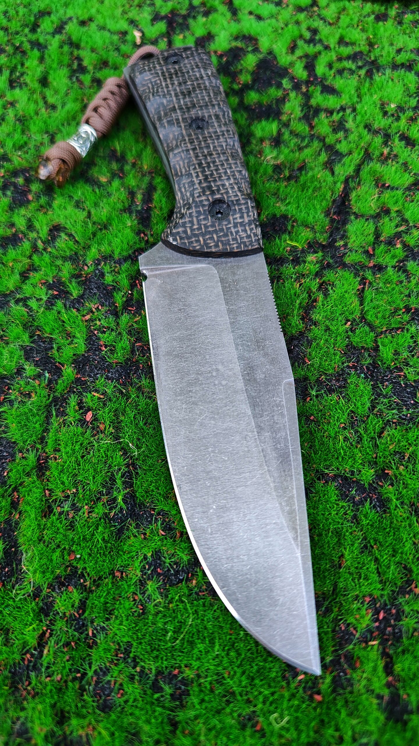 Wilk to solidny nóż użytkowy o konstrukcji full tang, zaprojektowany z myślą o realnej pracy w terenie i codziennym użytkowaniu. To model sprawdzony w praktyce i dopracowany pod kątem wytrzymałości, ergonomii i łatwości obsługi. Ostrze wykonane ze stali Sleipner, zahartowanej do 60 HRC, zapewnia bardzo dobre trzymanie ostrości przy zachowaniu odporności na zużycie i uszkodzenia. Grubość 4,2 mm i wysoki szlif dają kompromis pomiędzy wytrzymałością a dobrą pracą w materiale. Rękojeść z ekarty jutowej o gęstym splocie gwarantuje pewny chwyt w różnych warunkach także przy wilgotnych dłoniach. Całość uzupełnia pochwa z kydexu wyposażona w rotacyjny system montażu 360° (kompatybilny z Tek-Mount), z możliwością zmiany na inne rozwiązania. Nóż wykonany ręcznie w moim warsztacie bez produkcji seryjnej.