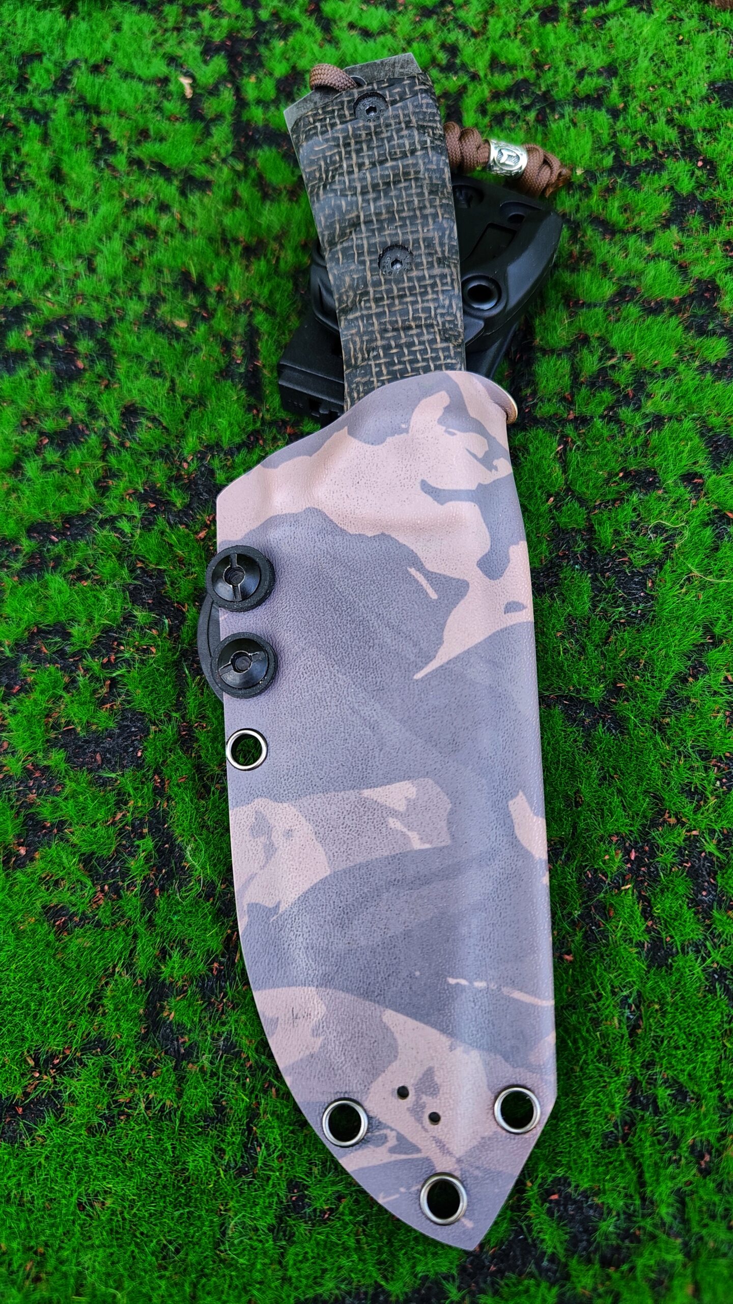 • POCHWA: Kydex camo z mocowaniem Tek-lock 360° (możliwość wymiany na inny system)